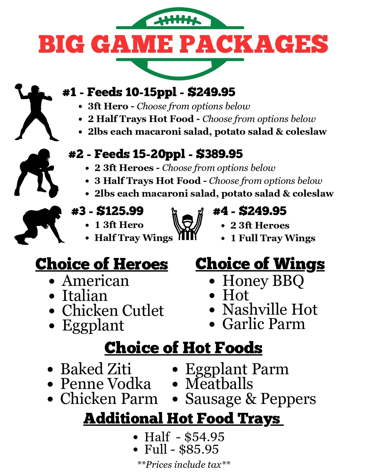 Prices are subject to change, all plus tax.
